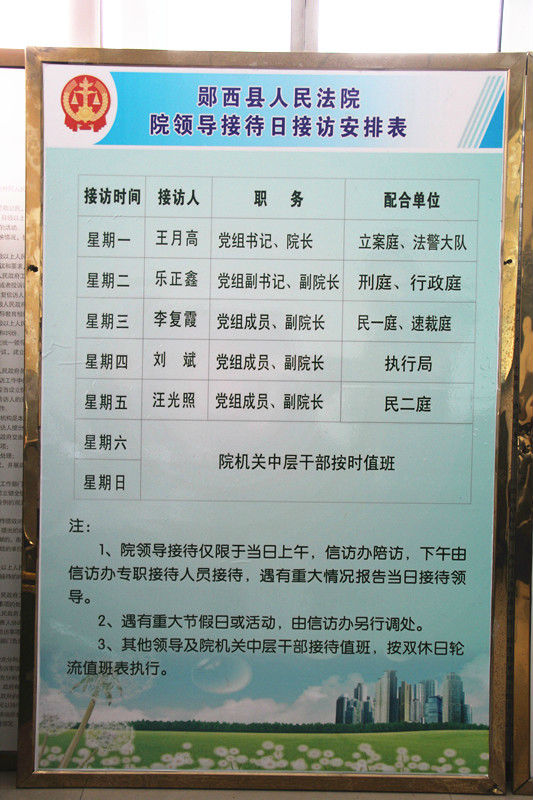 老百姓最担心的是有了诉求,不知道找谁,也不知道怎么找。郧西法院从硬件设施、人员配备、司法服务、落实职能等方面着力将诉讼服务中心打造成为“窗口单位”,真正实现了全方位服务、一站式服务,减轻了当事人诉累,提高了工作效率,切实体现了为民司法、公正司法。真正做到“ 听民声、访民意、察民情、排民忧、解民难”,积极践行群众路线,化解社会矛盾纠纷,利用窗口优势,拉近了群众与法院之间的距离。