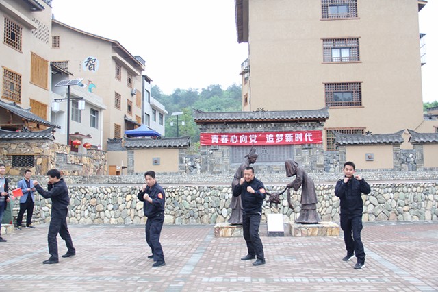 当日,在院领导的带领下,全院青年干警来到郧西县观音镇双石沟民俗文化村,参观双石沟民俗文化村及展馆,向村民发放普法宣传资料。参观结束后,郧西跆风武道教练团为大家表演了武术,6名青年干警合唱了《稻香》,1名青年干警独唱了《走进新时代》,以歌曲表达青年干警顽强拼搏、自信乐观的精神状态,歌颂伟大的新时代。4名青年干警深情朗诵了诗歌《我爱你中国》,全体青年干警合唱了《我和我的祖国》,干警们分别以不同方式抒发对祖国的热爱之情。法警队法警现场表演了独门绝技擒拿格斗。最后,院领导及全体青年干警开展了户外拓展活动。活动中,大家踊跃参与、积极表现,团结协作,既放松了身心,又增进了感情。活动现场,不断响起阵阵喝彩声、热烈的掌声和欢乐的笑声。