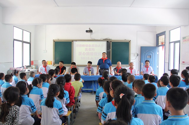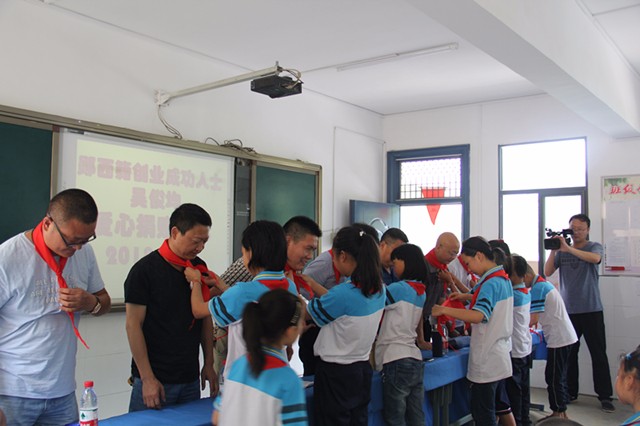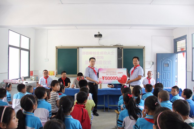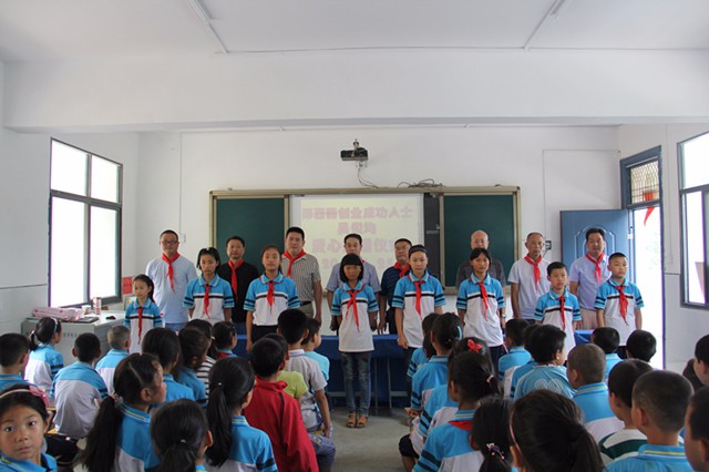 当日,在童袁中心小学举行了简单的捐赠仪式。该校学生代表向参加捐赠仪式的领导敬献了红领巾,吴俊均将捐款移交给该校校长。乐正鑫对吴俊均的爱心义举表示诚挚的感谢,并寄语该校教师要热心教育事业,教书育人,敬业奉献,努力培育出对祖国有用的人才。学生要常怀感恩之心,发奋学习、刻苦钻研,争做有志少年,立志为建设富强、民主、文明的社会主义现代化祖国而努力奋斗。