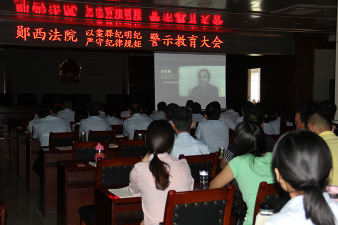 会后,全院干警集中观看了十堰市纪委拍摄的警示教育专题片《迷失的坐标》。教育片以发生在十堰市内的党员干部违纪违法典型案例,警示干警要严于律己,守住小节,提高拒腐防变能力,坚决做到守纪律讲规矩。
