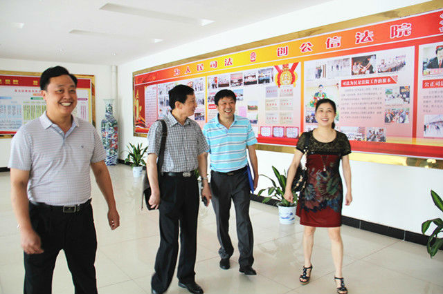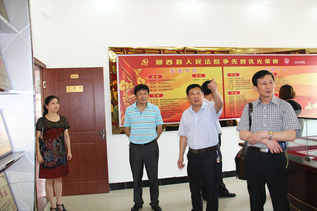 6月26日上午,省高院法官协会秘书长夏建国深入郧西法院调研,市中院政治部副主任邓百鸣、宋春梅陪同调研。