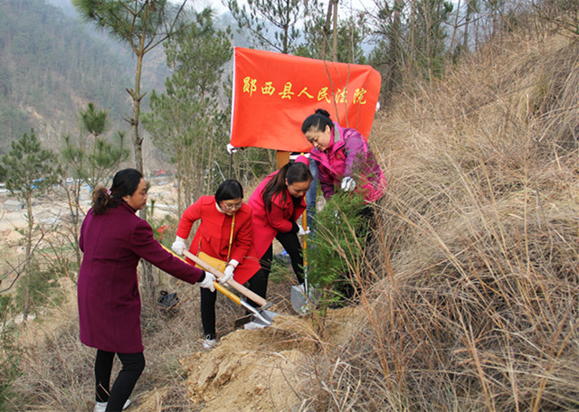 3月4日-5日,在植树节来临之际,郧西法院积极响应县委政府的号召,组织全院各庭室干警参加全县义务植树造林活动,为“绿满郧西”作出贡献。