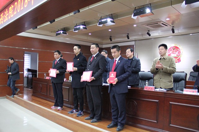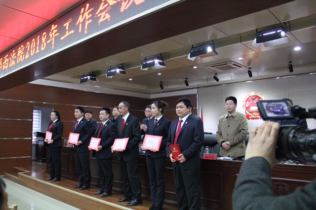 党组书记、院长付洪做了重要讲话,简要回顾了2017年法院工作,深刻分析了存在的问题和不足,强调2018年全院要认真学习贯彻党的十九大精神,坚决以习近平新时代中国特色社会主义思想为指导,以高度的事业心和强烈的责任感,坚持公正司法,司法为民,推进司法改革,强化队伍建设,忠诚履职,克难奋进,全力维护社会公平正义,为郧西经济社会发展和社会稳定提供强有力的司法保障。重点做好三方面的工作:一是狠抓执法办案,着力提高审判质效。二是加强队伍建设,大力推进纪律作风教育。三是推进司法改革,践行司法为民。