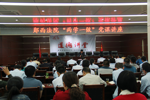 5月27日下午,郧西法院2016年第一期“法官讲堂”活动在机关三楼大会议室举行。活动由党组书记、代院长付洪主持,邀请了在国家法官学院参加学习培训归来的党组成员、副院长李复霞、民一庭庭长李尚群为全院干警讲课,全院干警及聘用人员参加了学习。