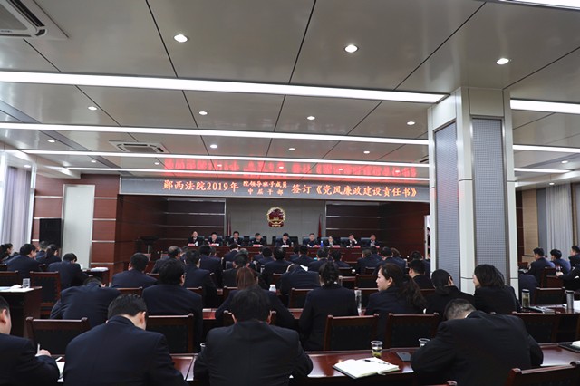 3月7日,郧西法院召开2019年度工作会议,深入学习省、市、县政法工作会议和全省、全市法院院长会议精神,安排部署2019年工作。县委常委、政法委书记郑宏明、县人大常委会副主任徐朝晖、县政协副主席刘少洪出席会议。院领导及全体干警、雇员制、聘用制工作人员参加会议。